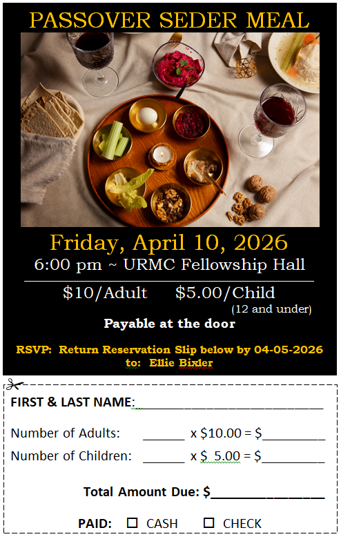 If you are not a regular attendee of our church and would like to attend the Passover Seder Meal, contact our church office at 717-757-4388 and leave a message including your name and phone number to make your reservation.
